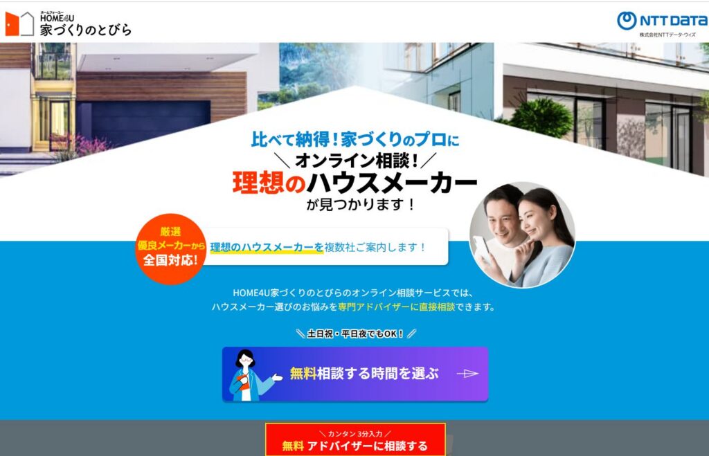 無料相談できるサービスはいくつかありますが、私のおすすめは、HOME4U 家づくりのとびらです。